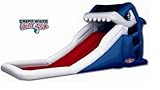 The Great White Wild Slide can be used wet or dry, for year-round play! This monster party slide inflates in just seconds and offers fun, safe play for two kids at a time. Kids will love climbing up the back of the shark's head, sliding or racing down the five-foot, safety netting-enclosed drop, then splashing and playing in the White Water Rapid Pool! This awesome activity center can be used in the summer with water and in colder months, too -- just fill it with balls (not included) and enjoy! Slide inflates in under two minutes, making for quick and easy setup. Includes inflatable unit, UL-approved blower, carrying case, stakes for the blower and stakes for the bouncer. Maximum weight capacity 200 lbs. Measures approximately 18'L x 6'W x 8'H.